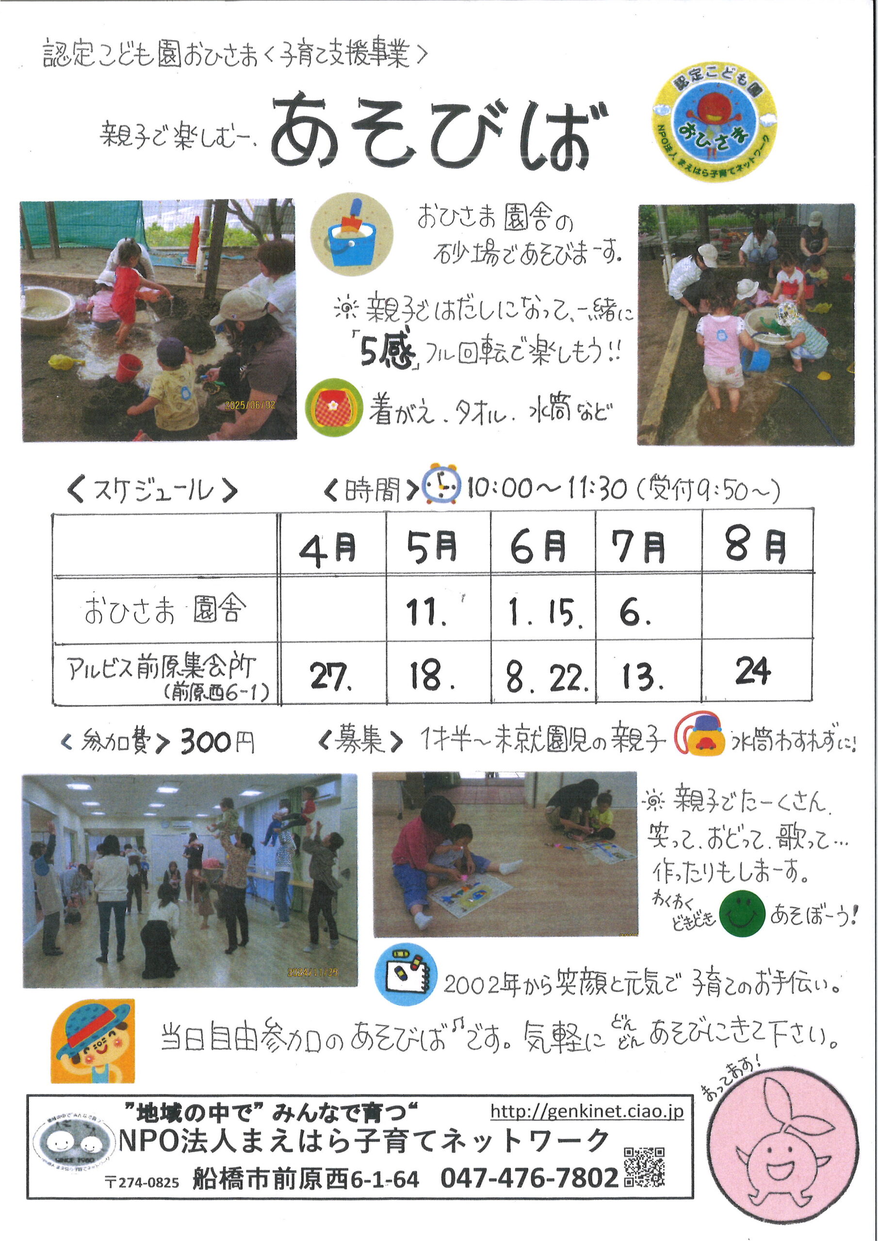 2026年4月以降のあそびばの日程が決定しましたのでお知らせします。